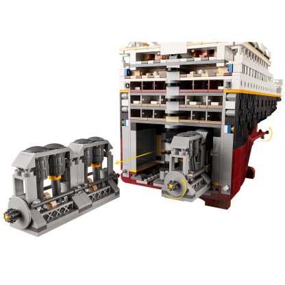 - The ship splits into 3 sections, giving a view of the detailed interior. Assemble and admire the grand staircase, cabins, dining room, smoking lounge, reading lounge and swimming pool.