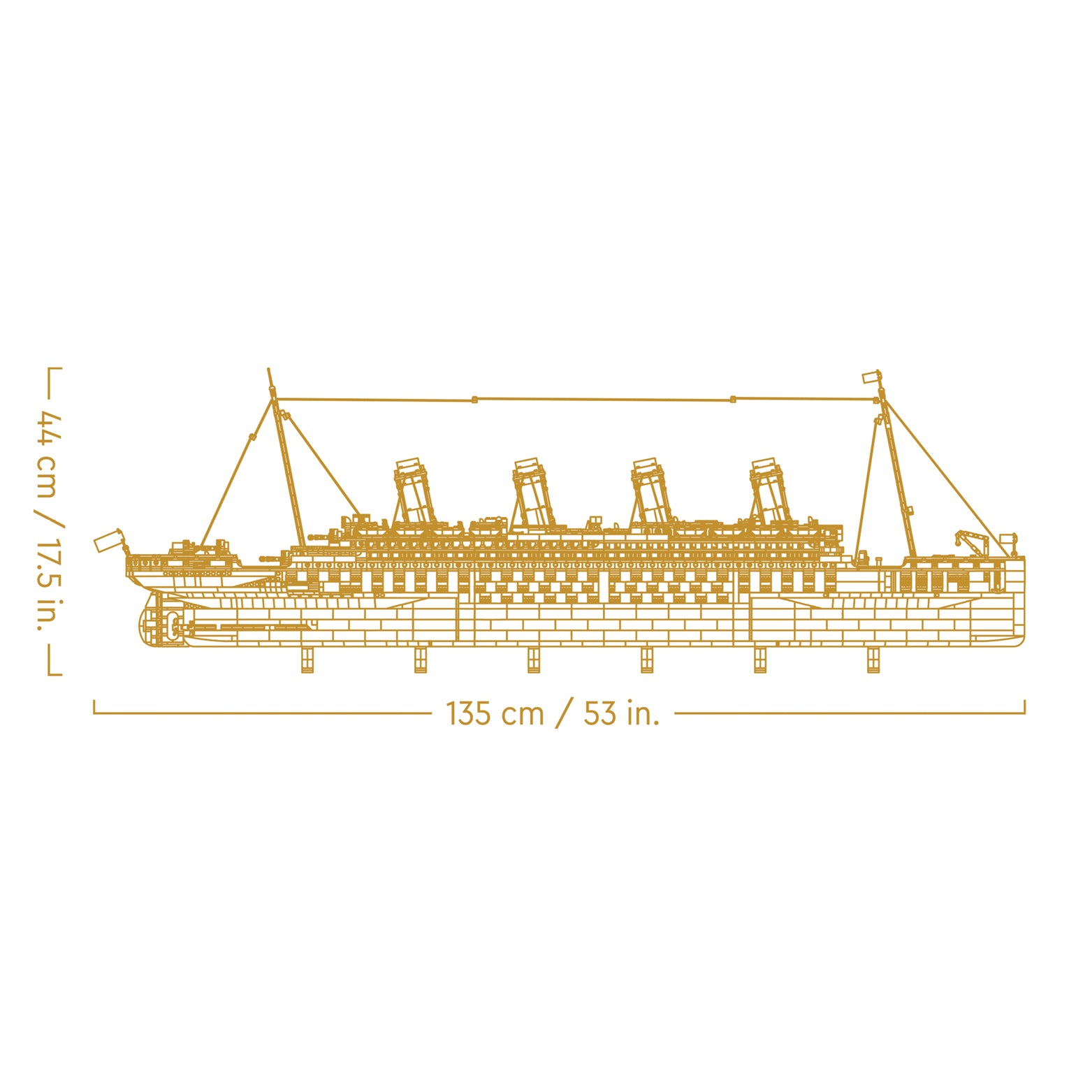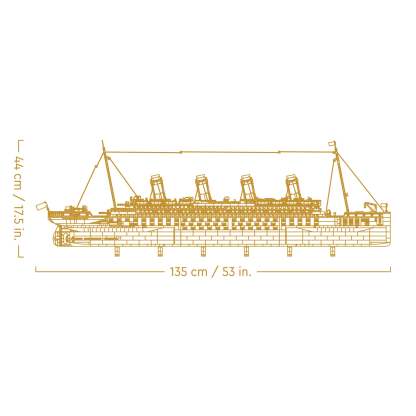 This 1:200 scale model is designed in 3 sections, faithfully recreating the features of the Titanic. The cross section reveals interior details like the first-class dining room, the grand staircases, one of the boiler rooms and many cabins from the different passenger classes. Bring the story of the Titanic to life by recreating details such as the ship’s bridge, promenade deck, reading lounge, swimming pool and many more.
